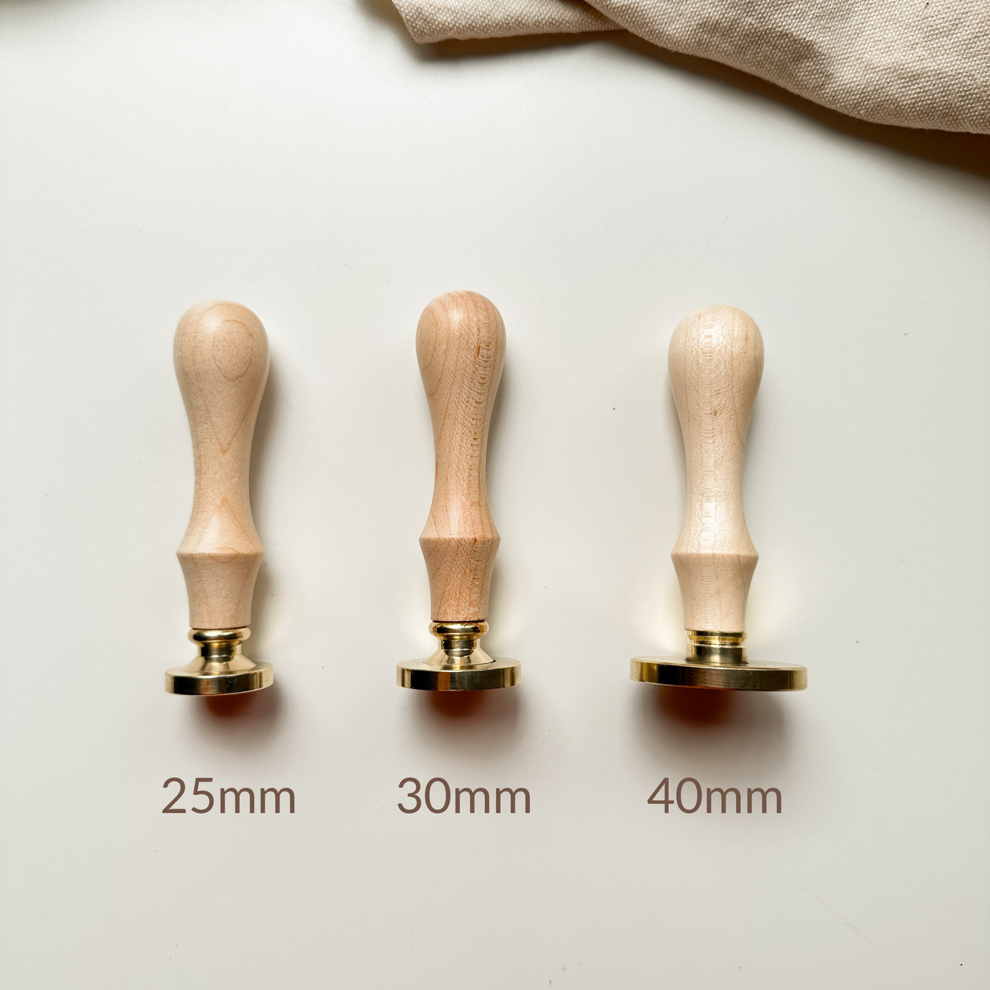 Brass stamp screwed on a hand finished maple wood handle.